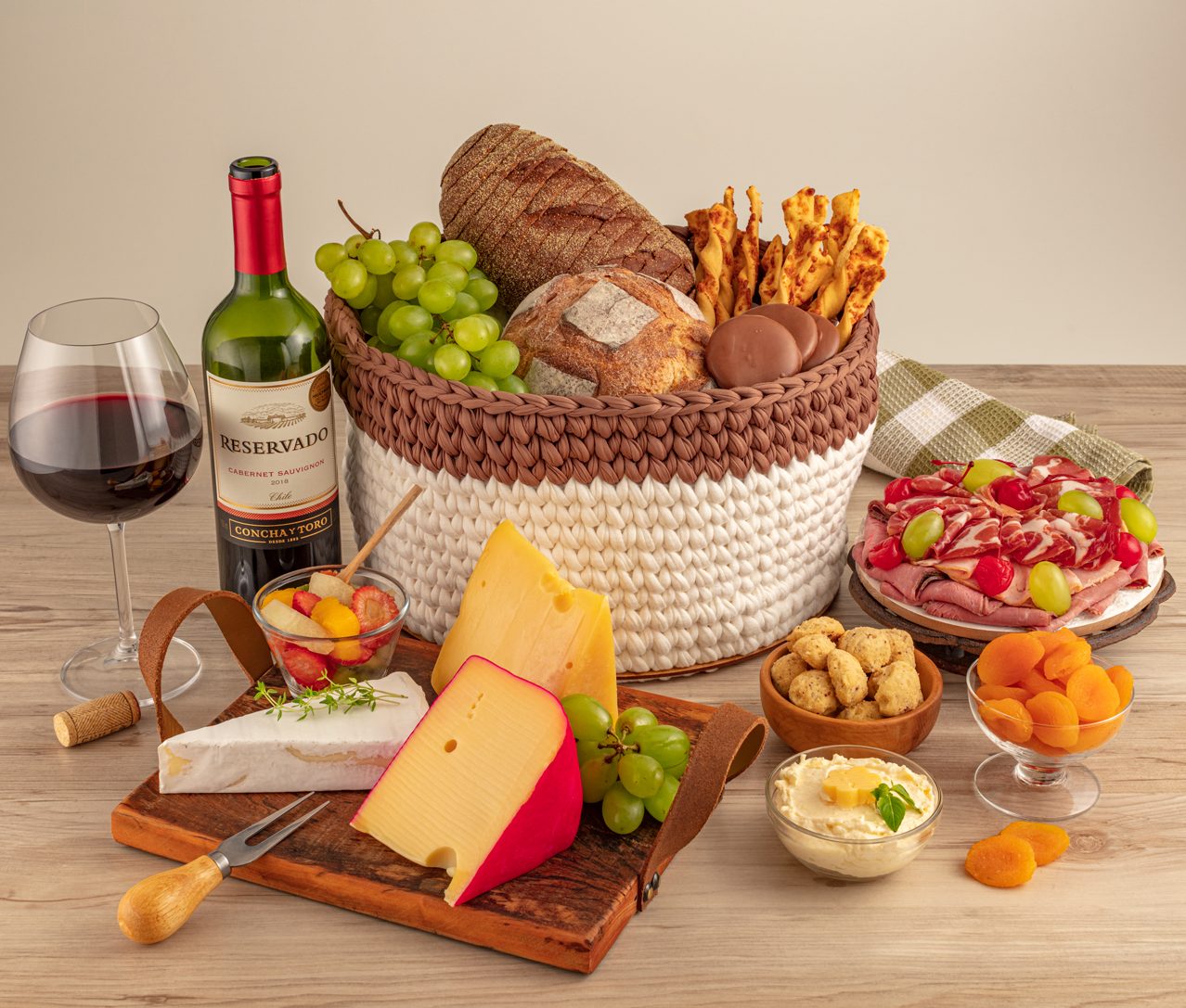 CESTA DE PRESENTE - 6 QUEIJOS + CHARCUTARIA + GOIABADA + MEL + PATE + LICOR DE JABUTICABA